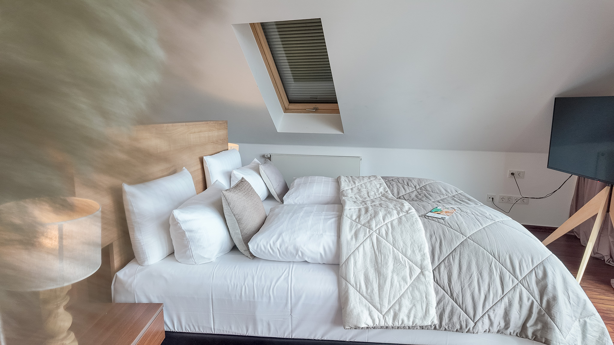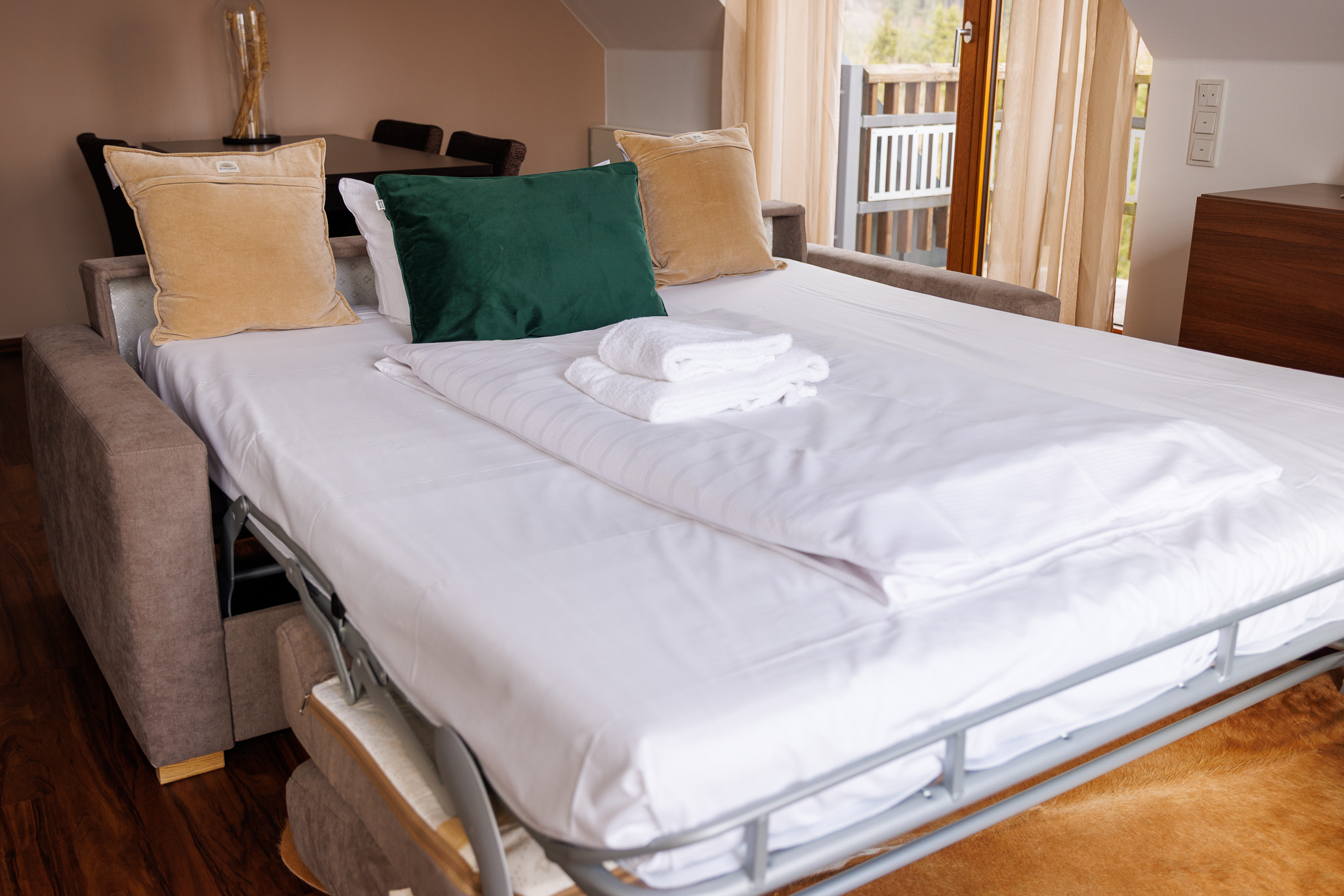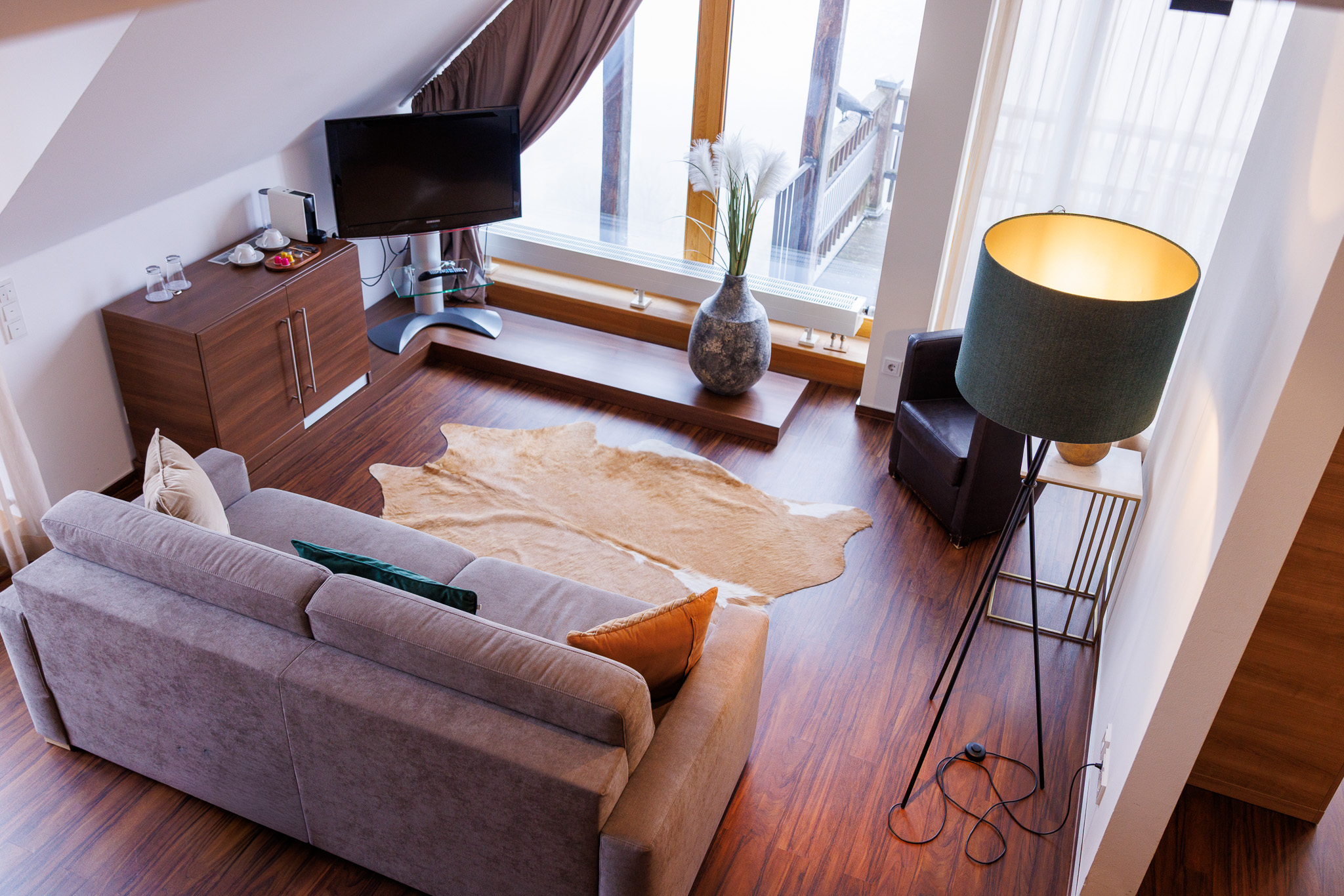 Diese außergewöhnlichen Maisonette-Suiten im Hauptgebäude mit freistehender Badewanne, Blick zum Steinbach-Stausee, Loggia, getrenntem Wohn- und Schlafbereich, bieten Entspannung pur, viel Platz und ebenso viel Privatsphäre. Alle Zimmer verfügen über eine besondere Ausstattung. Unter anderem hochwertig ausgestattete Betten für erholsamen Schlafkomfort, sowie L‘Occitane Pflegeprodukte.