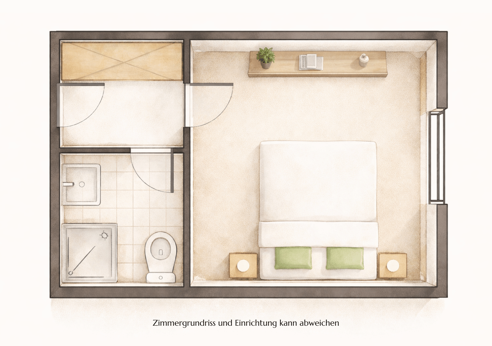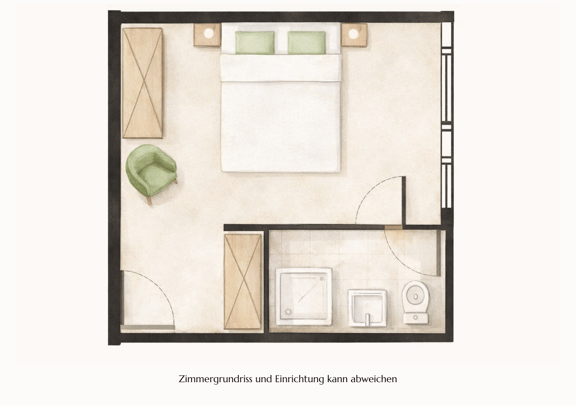 23 m² | 1 Schafzimmer | 1 Bad | Minibar