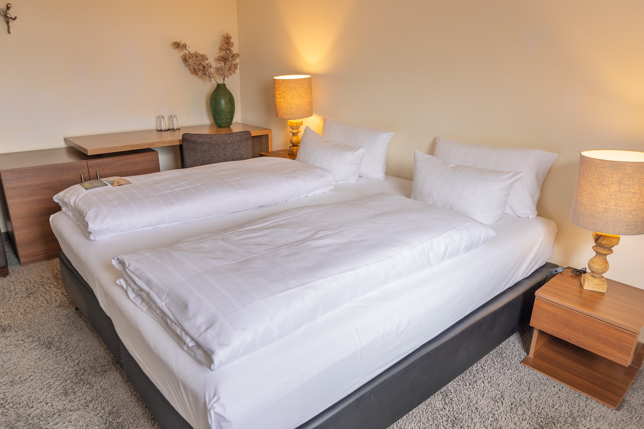 Alle Comfort Zimmer verfügen über eine besondere Ausstattung. Unter anderem hochwertig ausgestattete Betten für erholsamen Schlafkomfort, sowie L‘Occitane Pflegeprodukte.